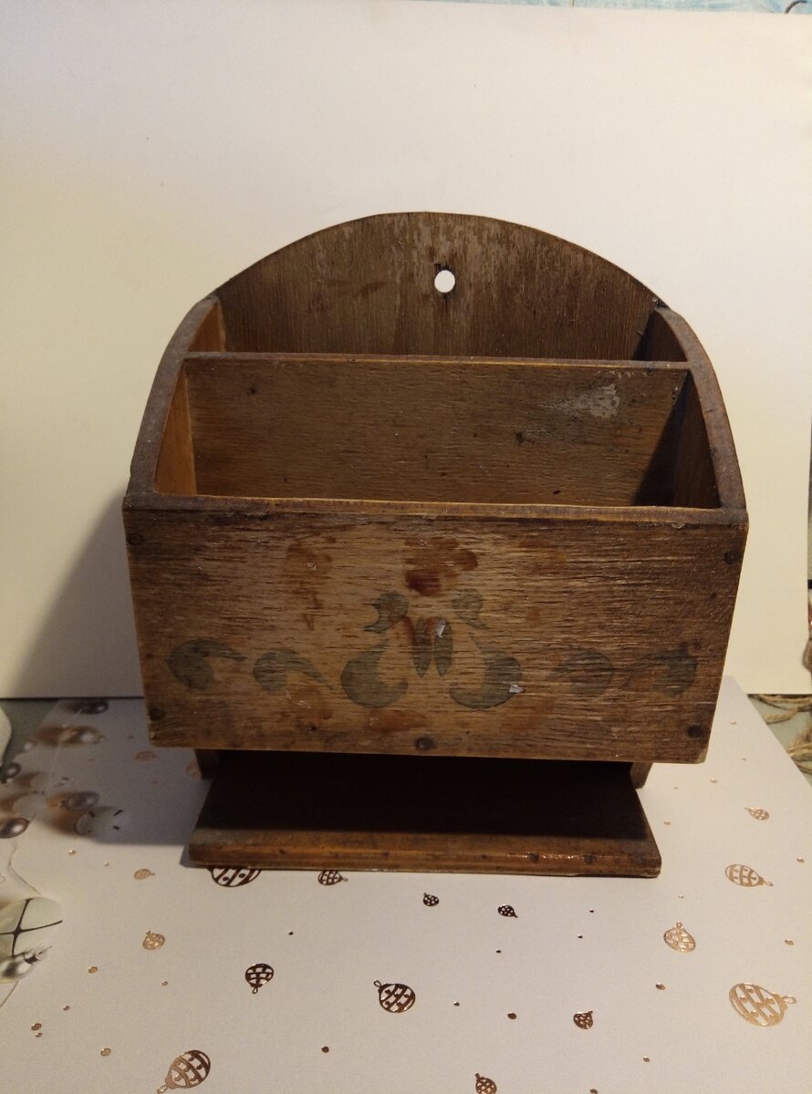 Недавно нашла у себя в закромах вот такую деревянную штучку. Я решила, что это был какой-то настенный органайзер для бумаг. Решила его обновить, поставлю на стол в свой творческий уголок.