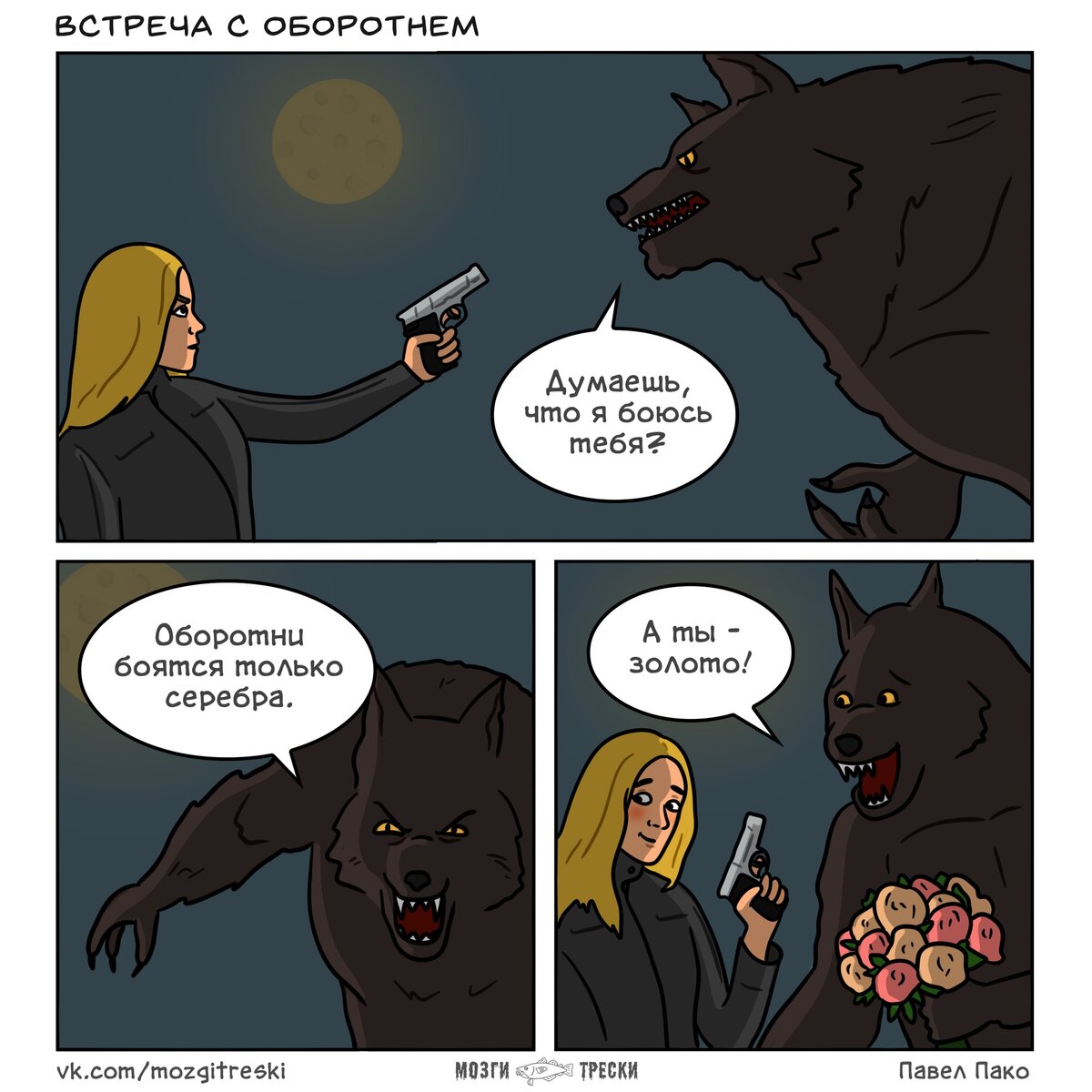 Комикс выше, а также несколько зарисовок, которые вы сможете увидеть далее, появились на свет потому, что у меня в голове появилась идея сделать несколько зарисовок, в которых различные монстры, вроде оборотней и зомби, решили вдруг стать романтиками и попробовать завоевать сердца понравившихся им девушек. Думаю, что в дальнейшем комиксы на эту тему еще будут появляться в моей группе (как минимум парочка идей еще есть). Кроме того, в этой подборке вы сможете увидеть комиксы и немного на другие темы - к примеру, о чем могли бы мечтать всякие сверхъестественные существа, а также действительно ли они настолько ужасны, как это может показаться со стороны. Надеюсь, что вам понравится, ну а за добавкой вы всегда можете заглянуть в Мозги трески.