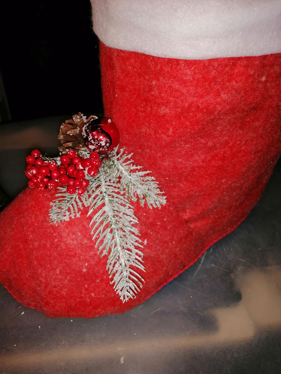 А как украсить сапог – дело вашей фантазии и возможностей. Раздербаненного фикспрайсовского новогоднего венка мне хватило на 3.5 сапога, остальное нашлось в старых новогодних запасах. На моих запасах, наверное, можно было и без венка обойтись, но уж больно там симпатичные веточки, шишки и, особенно, ягодки были. Плюс финальным штрихом стали снежинки, которые так и не попали на окна)