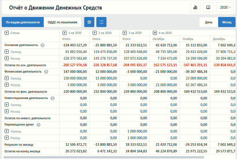 - отчет о движении денежных средств.
