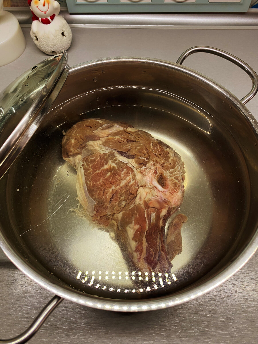 1. Кусок говядины на косточке промоем, зальём холодной водой.