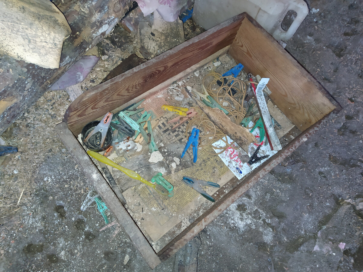 Всем привет! Продолжаю рассказывать и показывать заброшенный дом, в котором мы нашли много старинных вещей. Итак, мы находимся в основной комнате, в которой был полный бардак. Вся мебель была перевернута верх тормашками. Под ногами я увидел ящик, который вытащили из комода, в нем лежали резинки, прищепки, а еще лежала зубная щетка. Затем я заметил старинный шкаф, вещи из него были раскиданы по всей комнате. Я подошел к нему ближе. Я был сильно удивлен, когда заметил фотоальбомы, которые лежали на верхней полке шкафа. Внутри, я увидел старинные фотографии. Возмутило меня то, что почему-то родственники их не забрали, как такое возможно, не понимаю. Раньше фотографировали похороны, сейчас я даже не знаю, делают такие фото или нет, сейчас и в принципе встретить фотографию на бумаге, а не на электронном носителе, большая редкость. Вот такой толстый альбом красного цвета почему-то оставлен. Вообще мы никогда и ничего не забираем из заброшенных домов, но если вдруг объявятся родственники и на