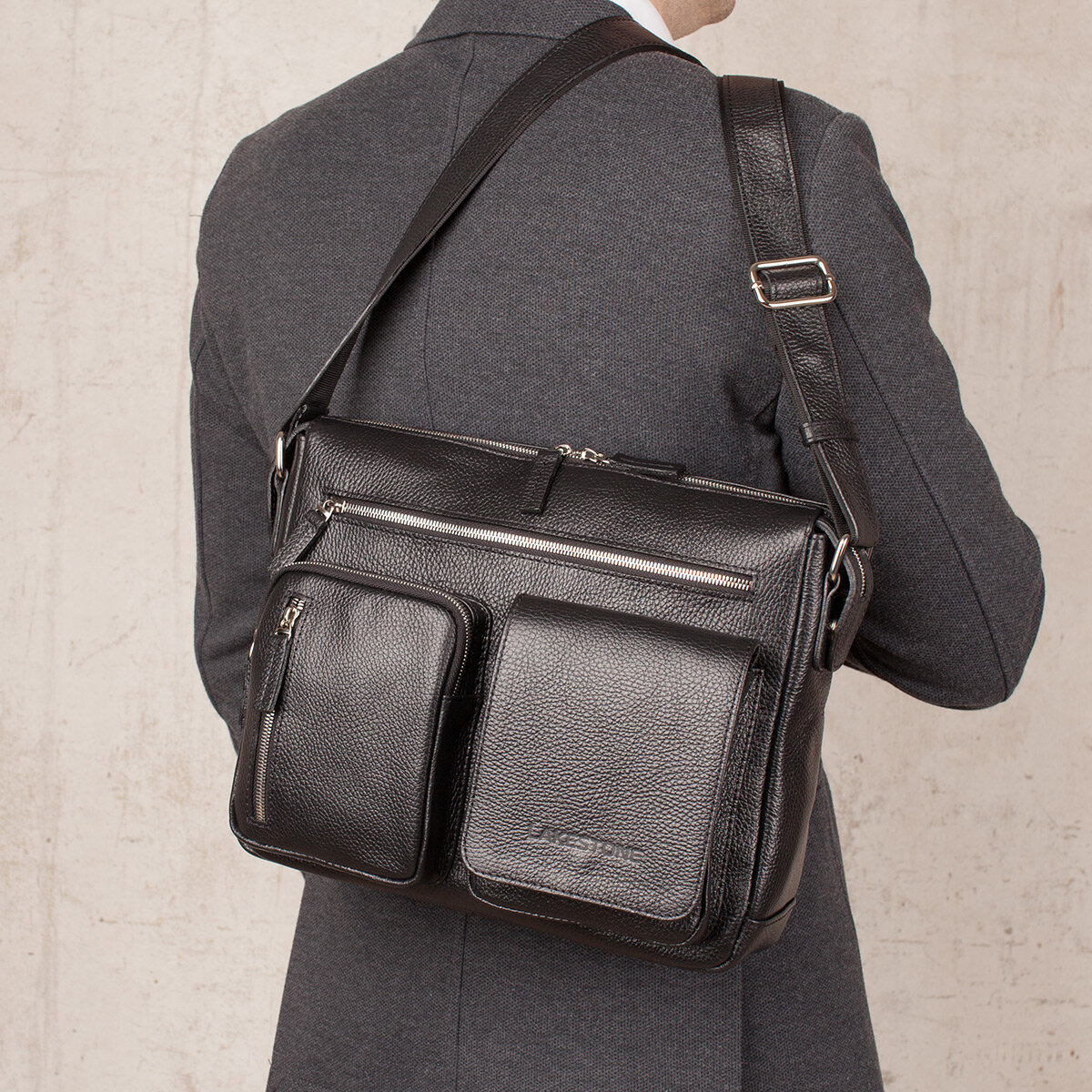 Если парень – студент – ему подойдет мессенджер с двумя отделениями и множеством карманов от LAKESTONE. Или же сумка через плечо Clapton Black, горизонтальная, стильная, с множеством карманов.