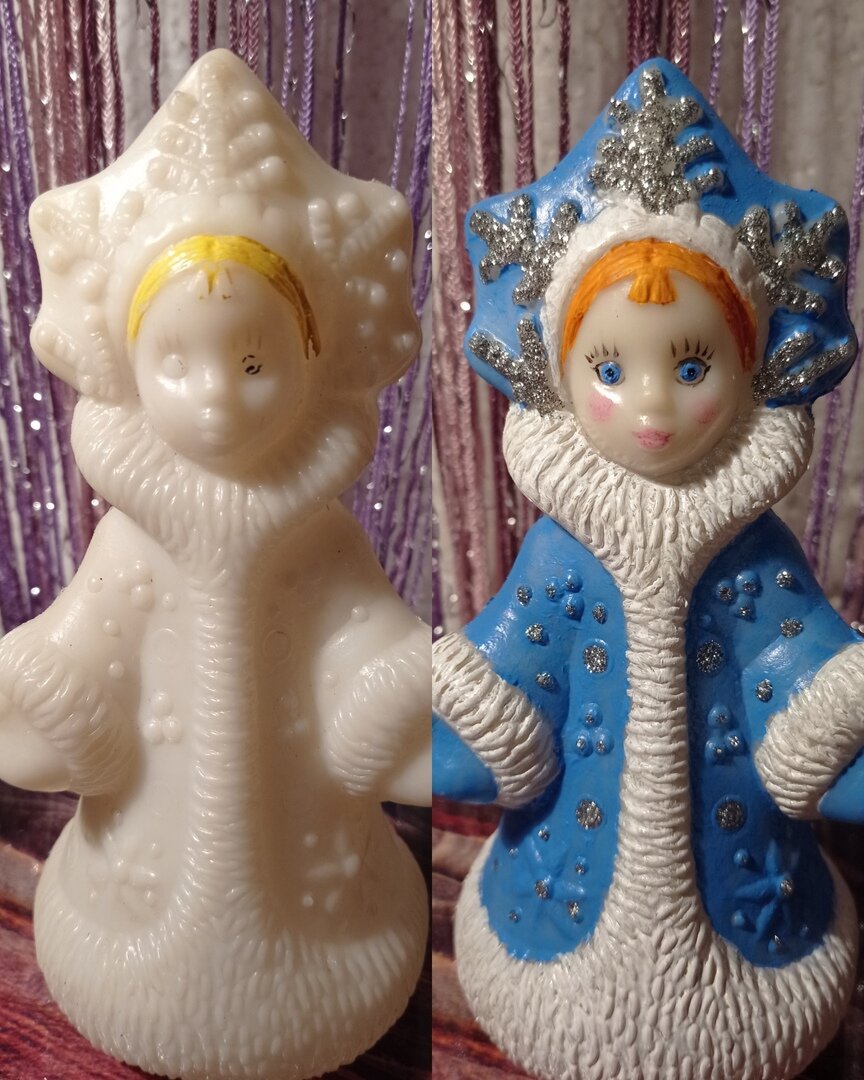 Новый год почти на пороге, и многие из нас обязательно соберутся с силами заглянуть в свои "закрома" - на антресоли, полки/шкафы, в кладовку)) А там - целый мир! Порой, о котором мы и не помним! Вот так случилось и с героиней моего сегодняшнего рассказа - пластиковой Снегурочкой, которая когда-то ставилась под новогоднюю елочку. Она долгое время лежала в кладовке и можно сказать была "потеряшкой")) Но в преддверии этого Нового года ей повезло и она наконец-то, каким-то волшебным образом вышла из тени, наверняка захотела преобразится. На днях моя подруга в прямом смысле слова "откопала" в своих закромах этот раритет. Снегурочка времен Советского Союза. На донышке у нее "выбита" цена в 40 копеек. Совершенно невзрачная, краска слезла почти вся. Только волосики напоминали, что когда-то она была блондинкой. Честно говоря, точный год выпуска мы не знаем, если вдруг у кого-то есть такая же и вы что-то знаете об этой советской игрушке - поделитесь информацией. Где запятую поставить?! Выкинуть
