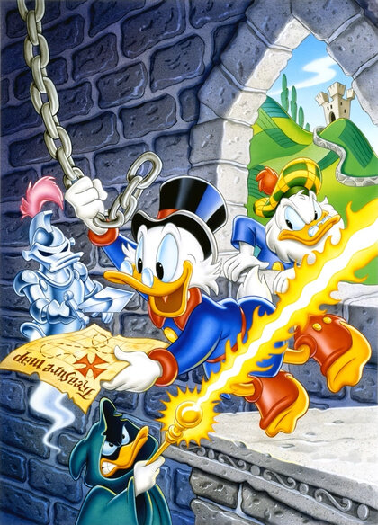 Игры по мотивам сериала Утиные Истории на NES всегда были для меня образцом игр по мультфильмам. Сюжет первой и второй части Duck Tales не следует напрямую сюжетным линиям мультсериала, однако как в игре, так и в мультфильме дядюшка Скрудж Макдак путешествует по различным уголкам планеты, с целью найти давно утерянные сокровища. Взяв за основу любовь Скруджа к путешествиям, разработчики добавили в игру и его друзей - Зигзага Макряка и Винта Разболтайло. Всячески противоборствуют Скруджу братья Гавс и Магика де'Гипноз, а также миллиардер Флинтхарт Гломгольд. Геймплей динамично сочетает в себе прыжки на трости, подъемы и спуски по канатам, исследование местности и решение простых головоломок.