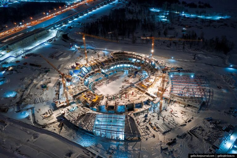 Известный новосибирский фотограф Слава Степанов опубликовал в своем блоге и социальных сетях фотографии многофункционального ледового дворца спорта, который строится в левобережной части города. Снимки сделаны с квадрокоптера в дневное и вечернее время.