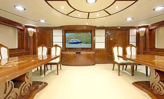 Давайте теперь с Вами заглянем внутрь этого прекрасного корабля.ото из открытых источников: каюта яхты «Байтерек»