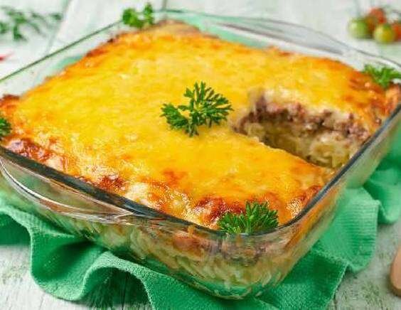 - Посыпать блюдо тертым сыром и запекать в предварительно разогретой до 180°С духовке 30 минут.