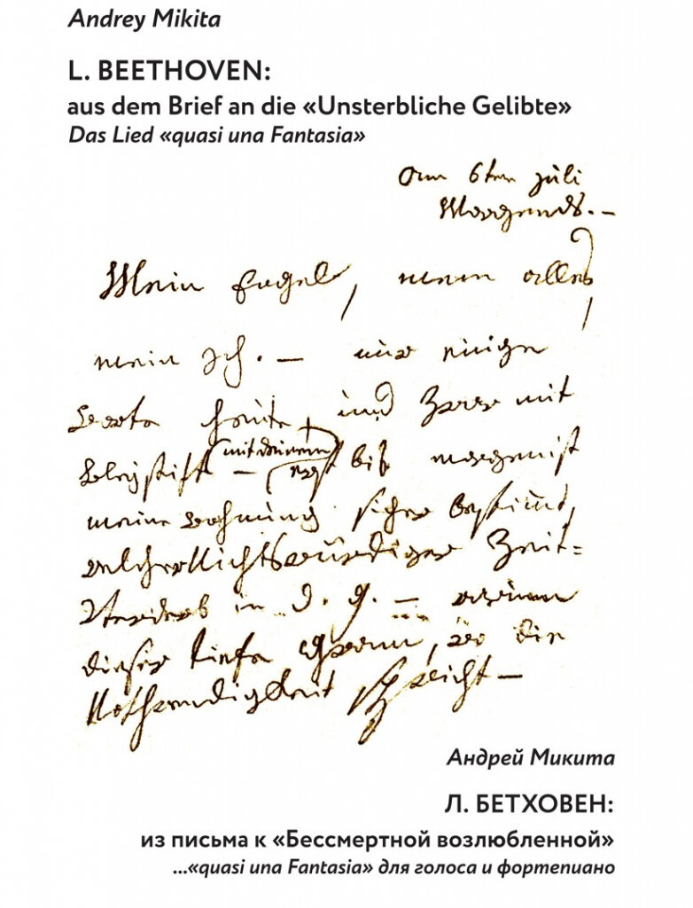 Издательство «КОМПОЗИТОР» опубликовало ноты современного произведения под названием «Л. Бетховен: из письма к «Бессмертной возлюбленной»» …«quasi una fantasia»». Автор нового сочинения Андрей Микита.
