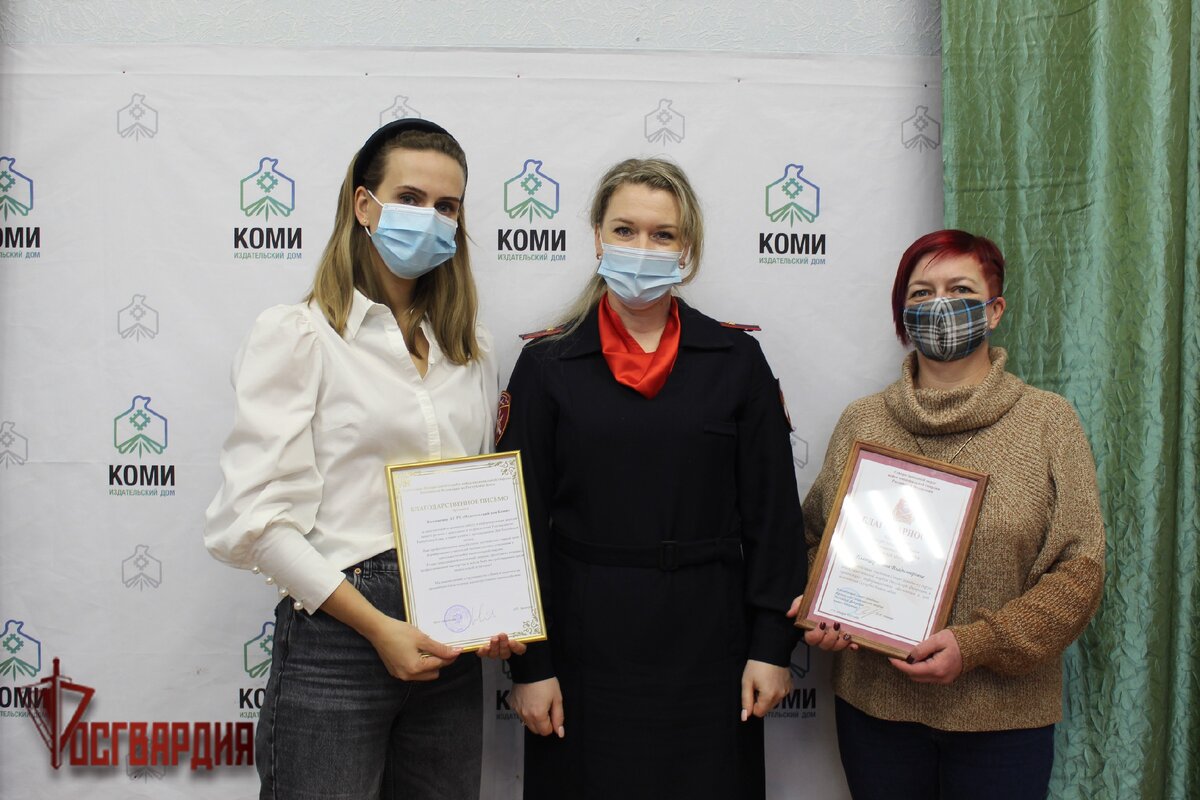 Начальник пресс-службы Управления Росгвардии по Республике Коми майор полиции Вера Крючек поблагодарила руководителей и журналистов ведущих региональных средств массовой информации за эффективную работу по информационному сопровождению о деятельности подразделений Росгвардии в Коми. Благодарственные письма были вручены от имени командующего Северо-Западного округа войск национальной гвардии