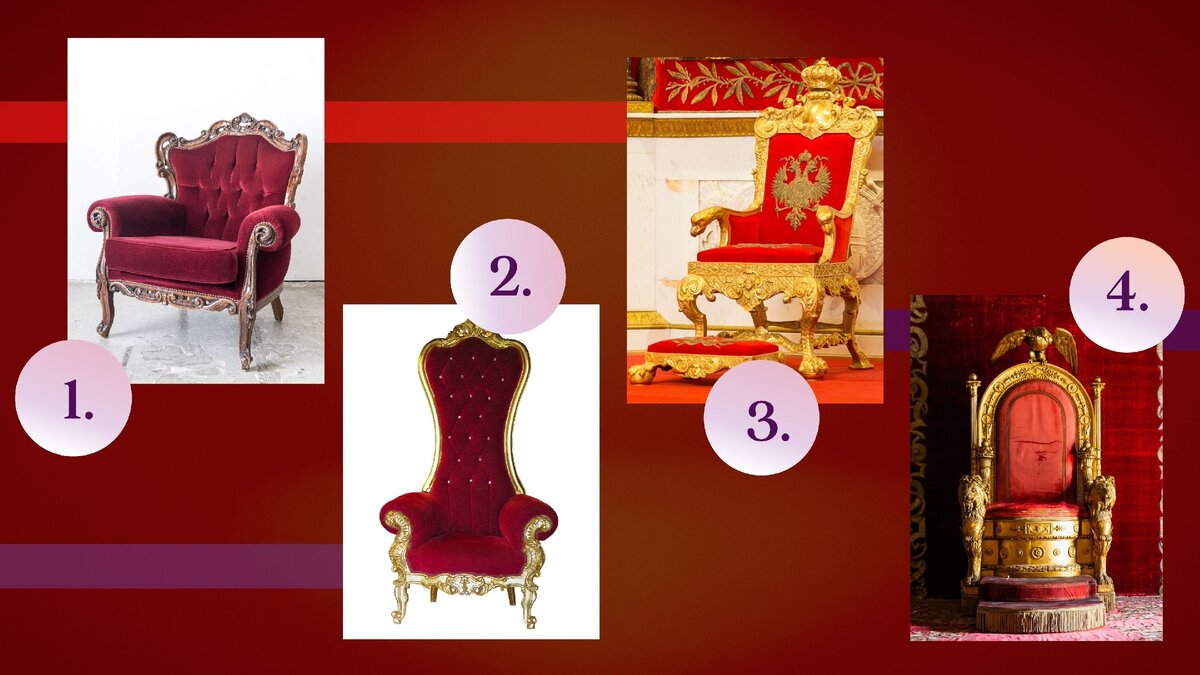 Визуальные тесты с картинками помогают лучше разобраться в себе за счёт подсказок подсознания. Так как каждая из вас — королева, предлагаю вам посмотреть на картинку и интуитивно выбрать трон по себе. Он расскажет о том, как вы выглядите в мужских глазах.