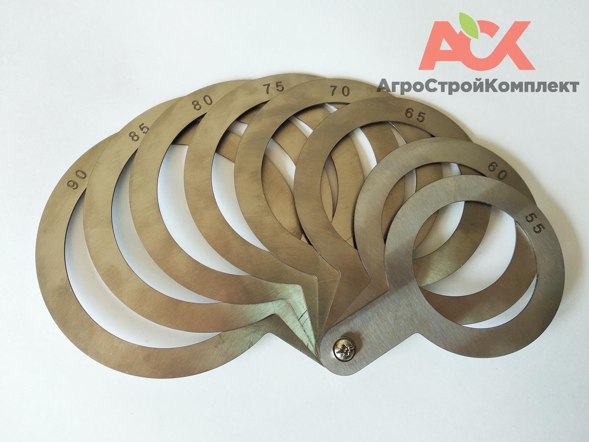 Ручной калибратор для яблок подходит для всех сортов. На ваш выбор представляем три стандартных набора калибровочных колец от минимального, подходящего для яблока диаметром 25 мм, до максимального диаметра яблока 90 мм. По вашему желанию изготовим калибратор на заказ с иным набором калибровочных колец. Каждый калибратор состоит из восьми колец, удобно связанных между собой в порядке возрастания