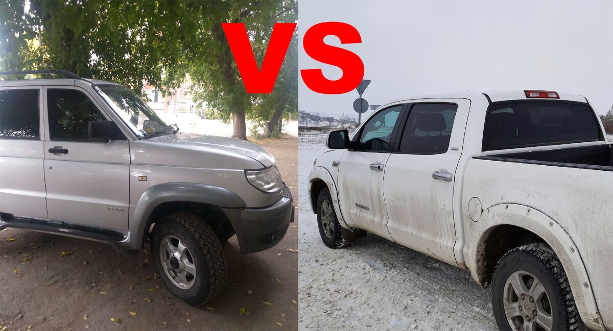 Вот вроде бы как можно сравнивать такие автомобили вообще? Цена тундры в самой пустой комплектации на сегодня начинается от 3,5 миллиона рублей. Цена УАЗа в топе 1,2 миллиона. В моем распоряжении есть оба автомобиля. Правда уже не новых, а достаточно потрепанных временем и дорогами на которых я их использую по работе и личным поездкам, но когда-то они сверкали лаком кузова и чистотой салона.