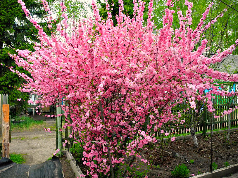 Отличается миндаль и мощной корневой системой. Если у вас есть на участке склон, который следует укрепить, смело сажайте кустарник на это место.