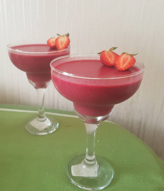 Разливаю теплую взбитую малиновую смесь по креманкам, а затем отправляю в холодильник.