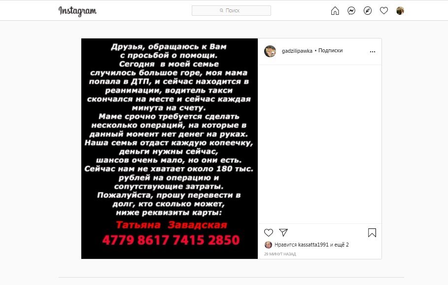 Но! Поскольку многие ПОВЕРИЛИ фейковому посту, ПРОСЬБА: распространите эту информацию, чтобы никто случайно денежку не кинул из любви к Татьяне Завадской и к Елене Богдановне Статкевич.