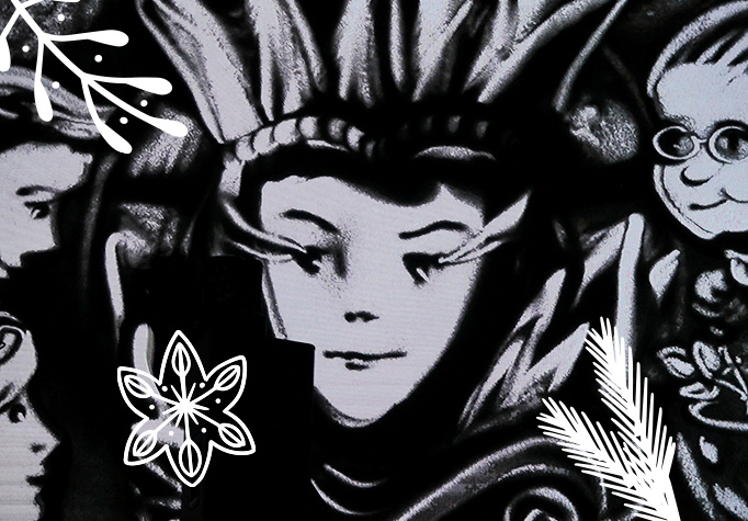 Посмотреть сказку про Снежную королеву нам предложили в амфитеатре музея. На сцене рядом с нарядной елочкой возвышался световой стол с песком, изображение с которого проецировалось сразу на три экрана: большой в центре и два поменьше по бокам. На сцене появилась сказочница со скрипкой в руках. Глеб от удивления открыл рот, пантомимой показывая, что это НЕ СКАЗКА, это КОНЦЕРТ! Но после небольшой интерлюдии на песке начал вырисовываться очаг, у которого разместились зыбкие Кай и Герда.