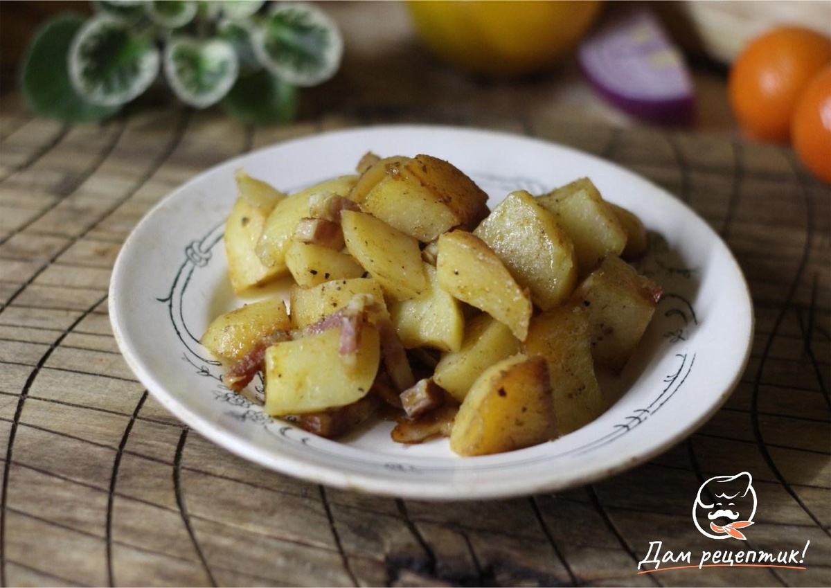 Картофель с копченым беконом – это пряный, пикантный и ароматный гарнир из доступных ингредиентов. Картошечка получается золотистой, сочной и яркой во вкусе. Гарнир отлично сочетается со многими блюдами из мяса, рыбы и свежих овощей.