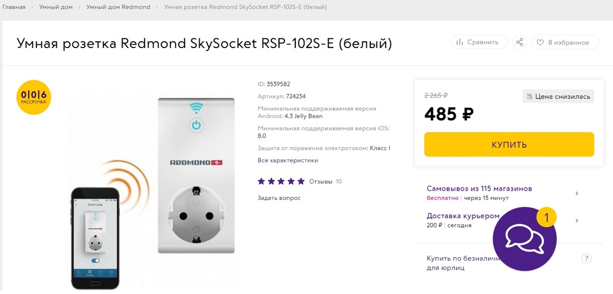 Связной продает данную умную розетку по достаточно привлекательной цене