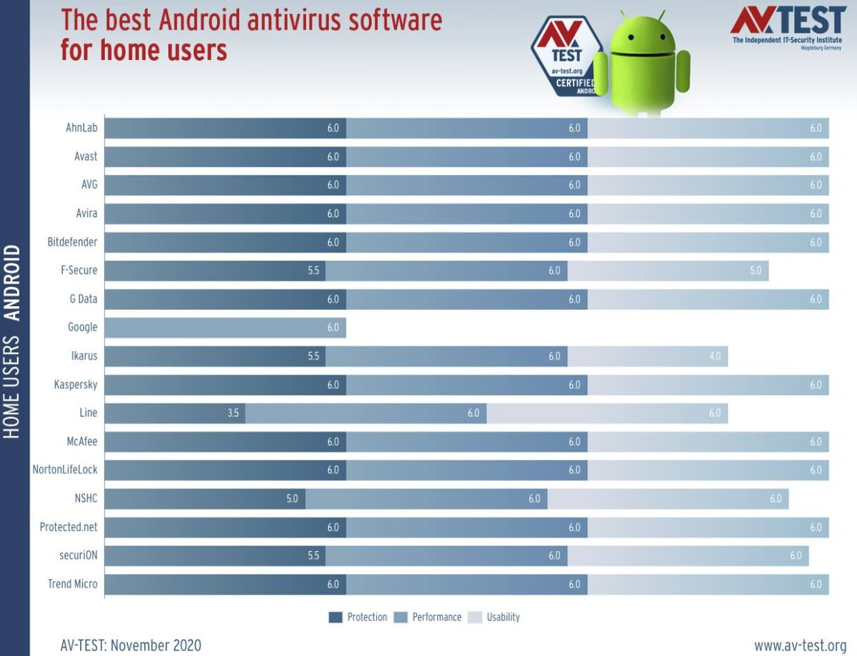 AV-TEST провела исследование, проанализировав набор из 17 продуктов безопасности для Android и протестировав их механизмы в трех различных категориях, а именно: защита, производительность и удобство использования. Google Play Protect служил базовым продуктом и получил 0 баллов за защиту, 6 за производительность и 4 за удобство использования.