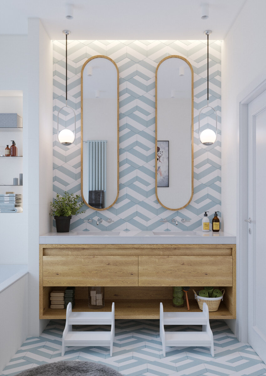 В этой статье мы собрали несколько примеров от наших дизайнеров, как сделать детский санузел спокойным, не слишком малышковым (дети растут так быстро), но при этом стильным и нескучным.