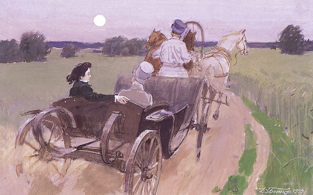 Зима. Татьяна и ее мать едут 7 суток в Москву со своими вещами. В Москве они останавливаются у тетки Татьяны – княжны Алины, кузины матери Татьяны.