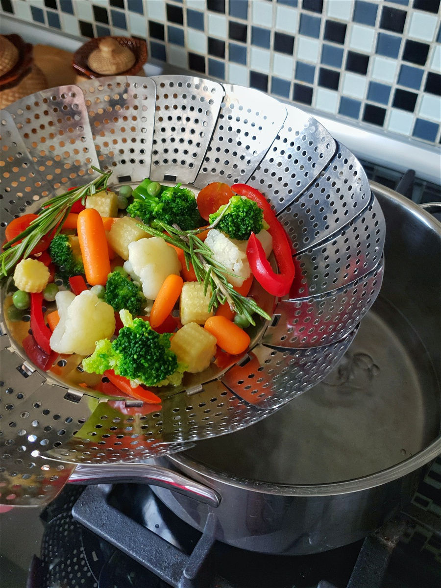 Лет 15 назад я купила первую лепестковую пароварку, в ИКЕЕ. Стоила она 99 руб., подходила под любую кастрюлю. Принцип понятен и прост : кастрюля, вода, внутрь пароварка.