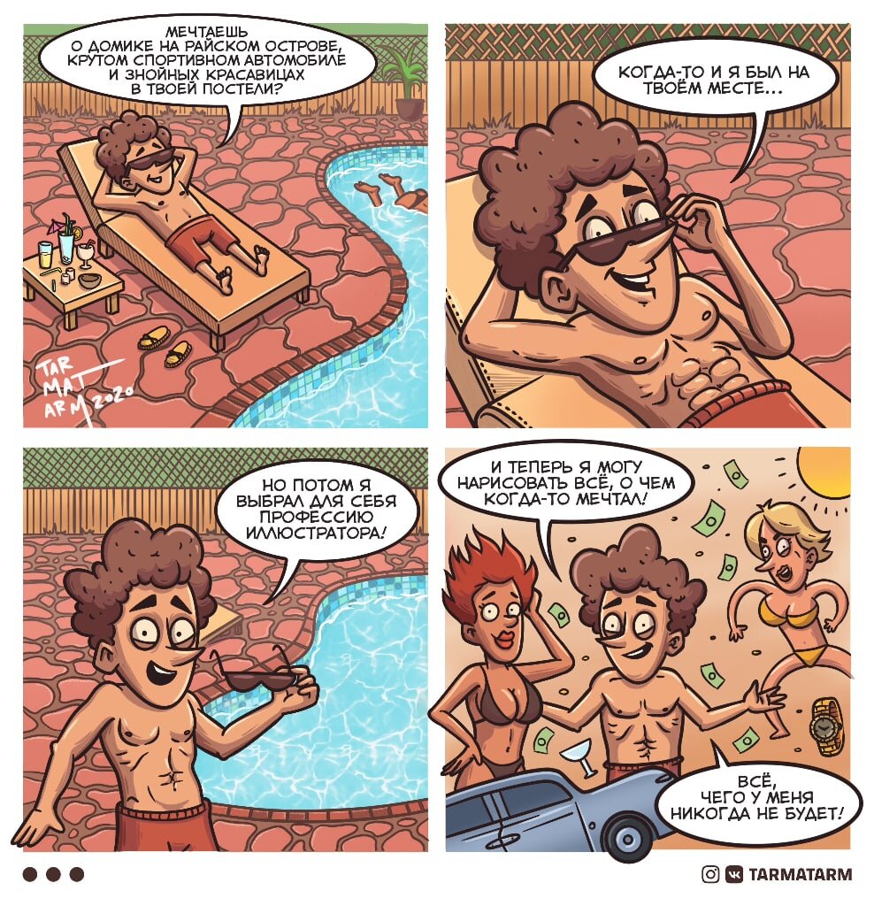 TARMATARM - это творческий псевдоним питерского иллюстратора по имени Егор. Егор работает художником-иллюстратором в онлайн-школе рисования и анимации, а в свободное время рисует в свое удовольствие и выкладывает новые работы на страничках в Инстаграме и ВКонтакте. Соцсети художник начал вести примерно в 2016 году, с тех пор аудитория значительно подросла - к примеру, в той же группе ВКонтакте на Егора подписано уже более 7,5 тысяч человек. Контент на странице TARMATARM самый разный - начиная от фанартов и забавных иллюстраций и заканчивая смешными комиксами в несколько кадров.