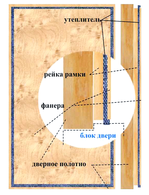 Совет! В некоторых случаях монтируется второй косяк и устанавливается дополнительная дверь — это достаточно эффективная мера, когда теплоизоляция осуществляется за счет воздушной подушки между полотнами, но не избавляющая от необходимости в утеплении наружной конструкции.