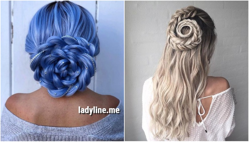 Для незабываемого вечернего образа отлично подойдет коса в виде объемного цветка. Эта прическа точно не останется незамеченной!