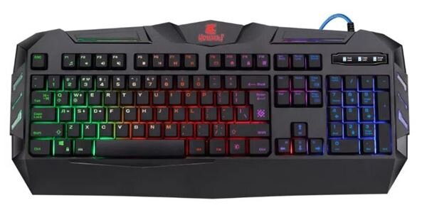 Недорогая игровая клавиатура, которая отличается отличным прочным корпусом, удобством в использовании и уникальным дизайном. Интересным компонентом является подсветка, выполненная в цветах радуги и металлическое дно, обеспечивающее прочность конструкции. Функциональные особенности представлены следующим образом: одновременное нажатие нескольких кнопок; наличие горячих клавиш быстрого доступа к мультимедийным приложениям; регулировка яркости и возможность отключения подсветки; влагоустойчивость и регулируемые ножки.