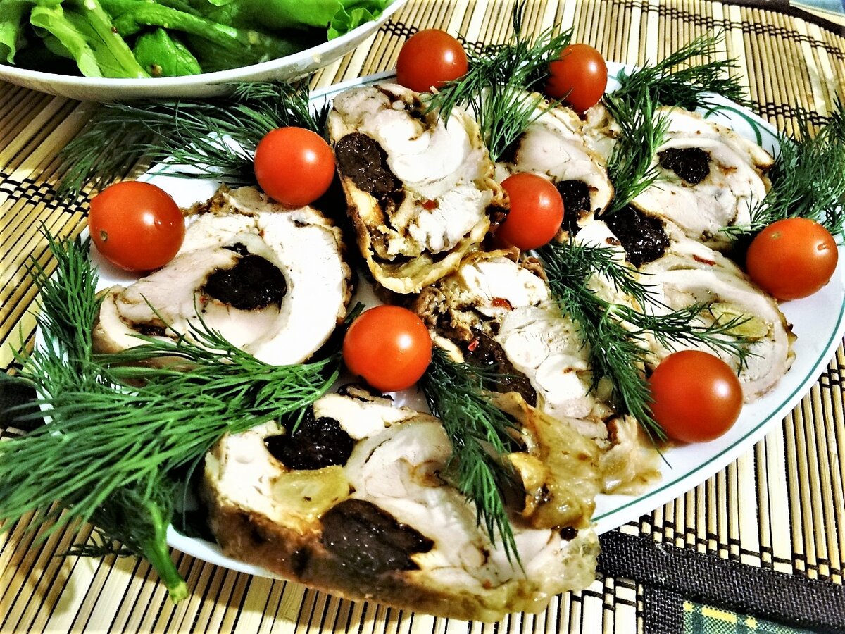 Начинка у рулета может быть разной, у меня сегодня для вас с черносливом и чесноком.