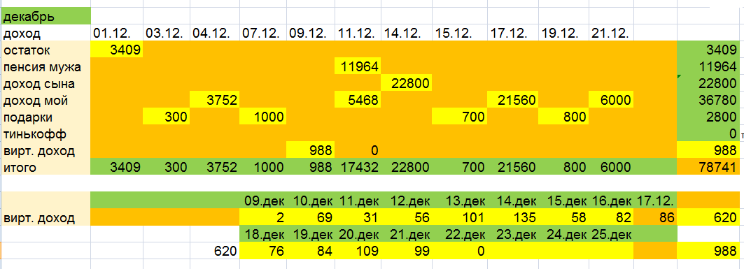 Заказала внучке подарок/ итоги бюджета за 20 декабря