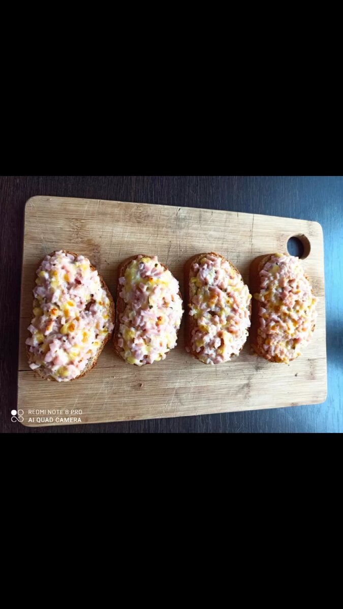 •Первое, что мы сделаем - это включим духовку на 180-200гр. Нарезаем мелкими кубиками ветчину и сыр (если есть желание, можно и натереть). Переложили в миску, добавляем наш секретный ингредиент - соус тартар (можно ещё добавить немного чеснока, если любите, я делал без него). Тщательно перемешиваем - начинка готова.