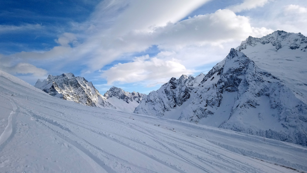 Это проверенные временем и самобытные российские курорты. Трассы в Домбае и Приэльбурсье, в частности на склонах Эльбруса, считаются самыми лучшими для новичков, а катания на трассах горы Чегет (также в Приэльбрусье) больше подойдут уже уверенным лыжникам. Зимой здесь довольно тепло — от –3 до –6 градусов.
