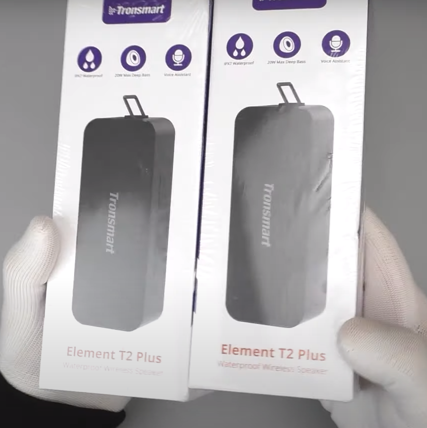 Всем привет Сегодня у меня на обзоре пара портативных колонок от компании tronsmart названия этих моделей Element T2 Plus. Давайте всё-таки распакуем и проверим в работе а также протестируем заявлено степень защиты ipx7. Комплект поставки здесь остался прежним это будет сама колонка, шнур USB, провода лучше и конечно же инструкция.
