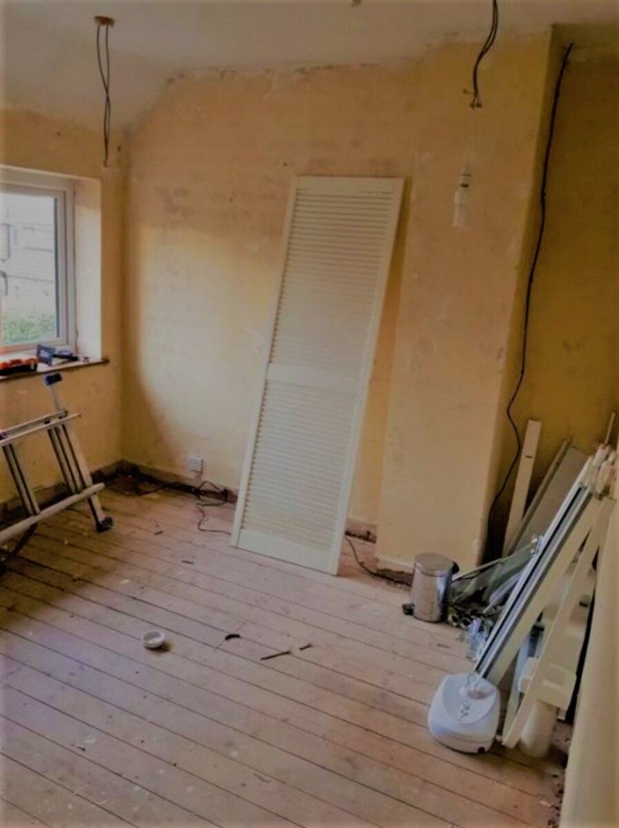 Первым делом друзья мы вынесли всю мебель, и что мы видим пещеру с голыми стенами, потолок с котого уже спиться известка, а углы покрыты заплесневелыми пятнами.