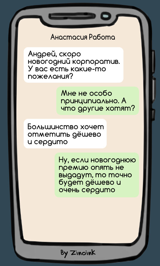 Пришло время посмеяться над одной из самых наболевших проблем — организацией корпоративного празднования нового года! Почему именно сейчас? Потому что, во-первых, среда — маленькая пятница, а значит, тема праздника уже актуальна, во-вторых я уже придумал смешные #смс переписки с коллегами, из которых становится ясно, что #корпоративы будут на свежем воздухе, а украшать #офис придется из того, что есть под рукой.