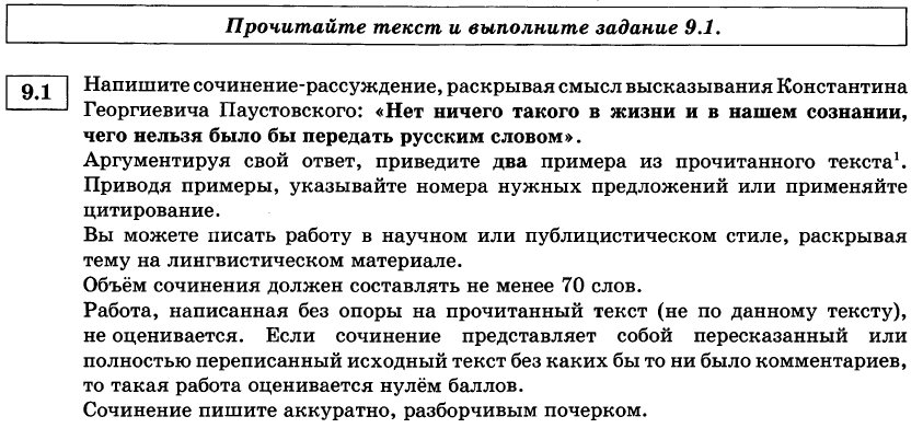 Задание 9.1 повышенной сложности, оно проверяет умение создавать письменное высказывание в форме сочинения-рассуждения о роле разнообразных лексических и грамматических явлений в тексте. Пример задания: