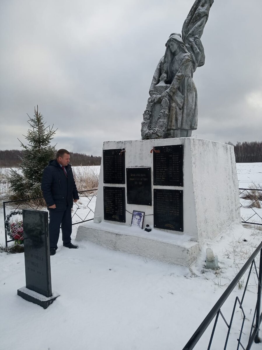 В ходе рабочего визита в деревню Воинка посетил Братскую могилу, которая была создана в 1955 году. Здесь покоятся останки погибших в декабре 1941 года воинов. Установлена двухметровая скульптурная группа - фигуры солдата и медсестры. В метре от этого памятника, дочерью погибшего летчика Н.И. Стебловского, установлена мемориальная плита с надписью: «Здесь покоятся летчики 4-го авиаполка Иванов