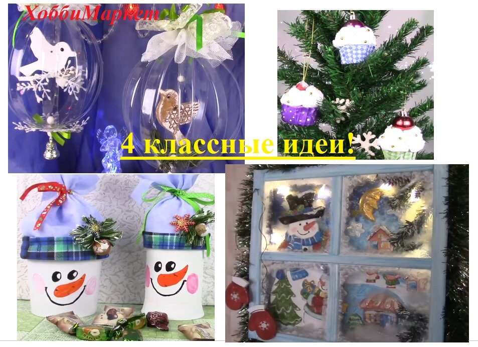 4 классные идеи! Новогодние поделки из прошлых видео. ХоббиМаркет