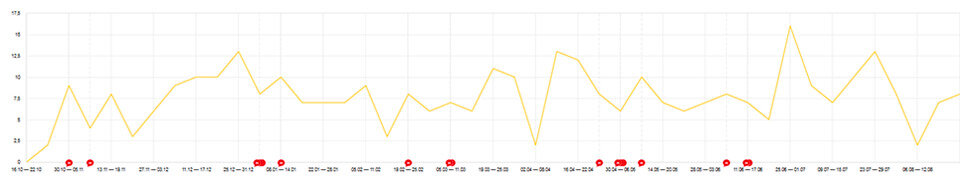 В августе 2017 года мы столкнулись с проблемой, что трафик перестал расти, аналогичная проблема произошла, соответственно и с позициями запросов. Действовать решили кардинально.