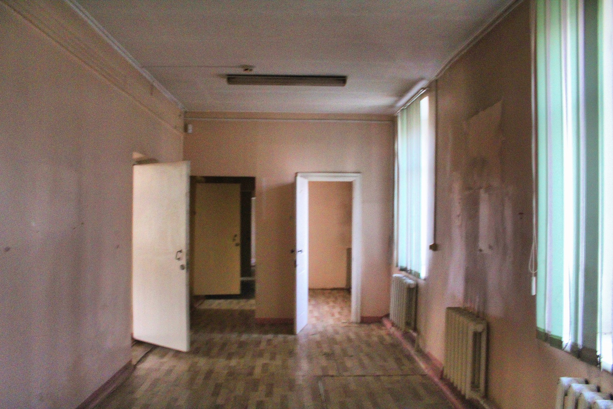 В этом бывшем отделении множество кабинетов, но к сожалению полностью пустых, хотя в очень хорошем состоянии. Всё отделано кафелем и все радиаторы отопления на местах.