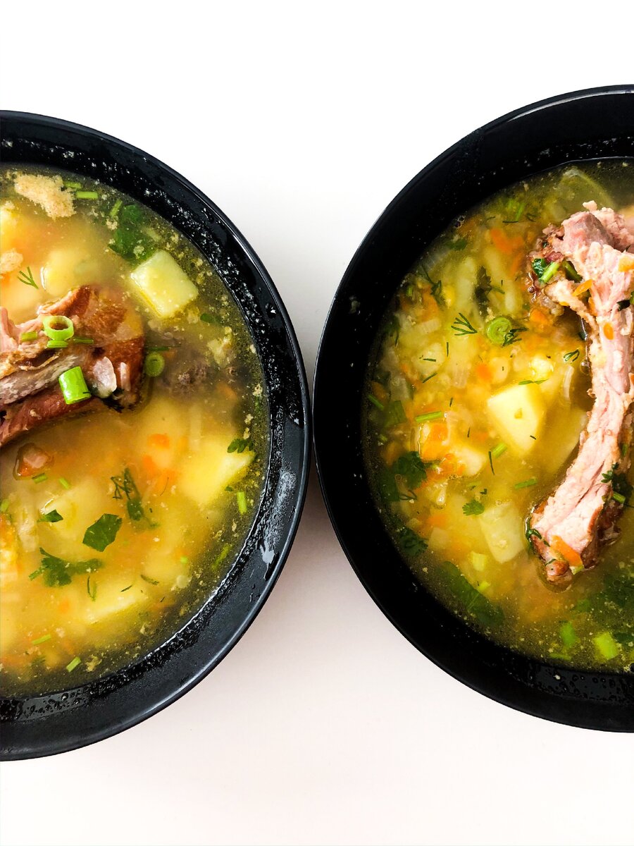 -‼️Лук обжариваю в кастрюле и добавить крупно натертую морковь. Спустя несколько минут, отправить туда же копченые свиные рёбра. Залить кипятком и положить горох. Нужно помнить, что он сильно разварится и не переборщить с количеством. Через 20 минут добавить картошку, чёрный перец и чеснок. Варить до готовности картофеля. Засыпать зеленью и дать 10 мин настояться. ‼️ Все ещё проще, чем обычно, но все ароматы в кастрюле собираются, ничего не пропадает.