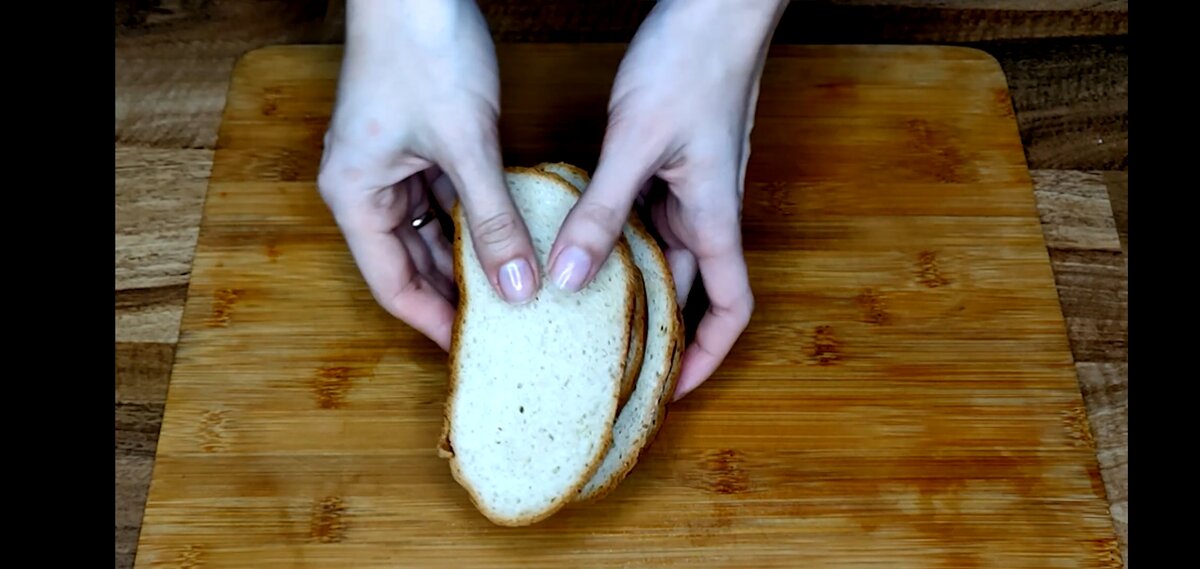 Берем батон и разрезаем его пополам.