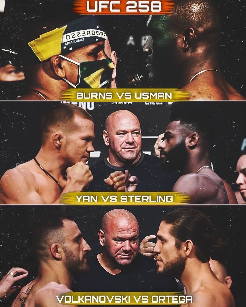 13 февраля 2021 года в Абу-Даби на бойцовском острове состоится номерной ивент UFC 258. В разработке на этот турнир сразу три титульных боя: Камару Усман - Гилберт Бернс, Петр Ян - Алджамейн Стерлинг, Александр Волкановски - Брайан Ортега.