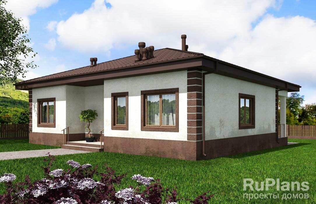 Дом разделен на две части: в левой части находятся спальни (16, 12 и 14 м²), гардероб, ванная комната и санузел, в правой части расположилась объединенная кухня-гостиная. Из гостиной есть выход на небольшую террасу.