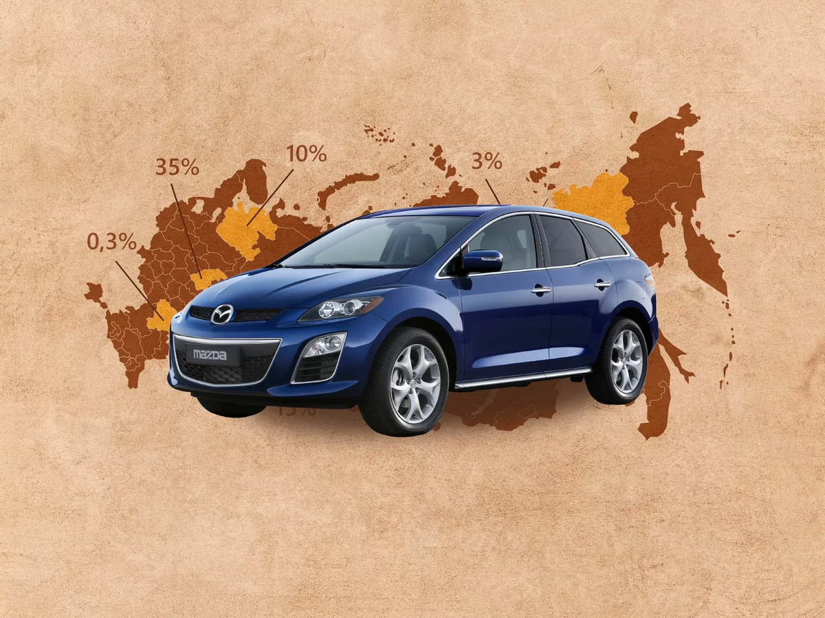 Кроссовер от Mazda оказался ограниченно популярен не только с точки зрения объемов продаж, но и с точки зрения географии его распространения. Об этом можно судить по тому, что ни в одном из крупных регионов нет значительного перевеса по числу машин в продаже. Более того, ни один регион не может похвастаться долей хотя бы в 20%. Так, в Москве и Поволжье традиционно собрано больше всего вариантов – около 18% в каждом. И, собственно, только здесь число объявлений переваливает за две сотни, что обещает неплохие шансы найти хороший CX-7. В Санкт-Петербурге собрано 4% предложений, что не очень мало в процентном отношении, но скудно в числовом. На юге страны прописались чуть менее 10% автомобилей, а на Урале и в Сибири – еще меньше, около 7% на каждый. На этом фоне десяток машин, нашедшихся на Дальнем Востоке, тянет на абсолютный рекорд в 1% среди всех рассмотренных нами ранее моделей. Кстати, вопреки ожиданиям, почти все они леворульные.