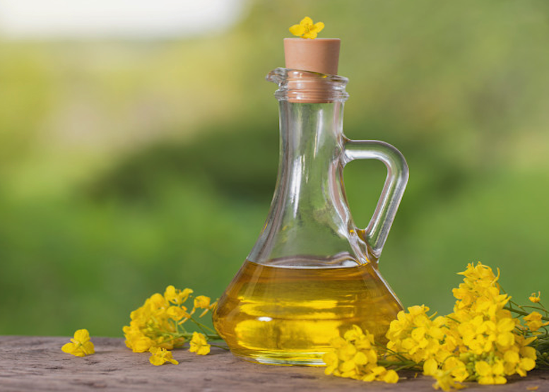 Рапсовое масло имеет желтый цвет и нежный аромат. Это хороший источник витамина Е и большого количества омега-3. Оно менее восприимчиво к свету и температуре, чем другие масла, поэтому дольше остается свежим. При добавлении в блюда продлевает срок их хранения. Подходит для салатов и для жарки (в том числе во фритюре), тушения, запекания.