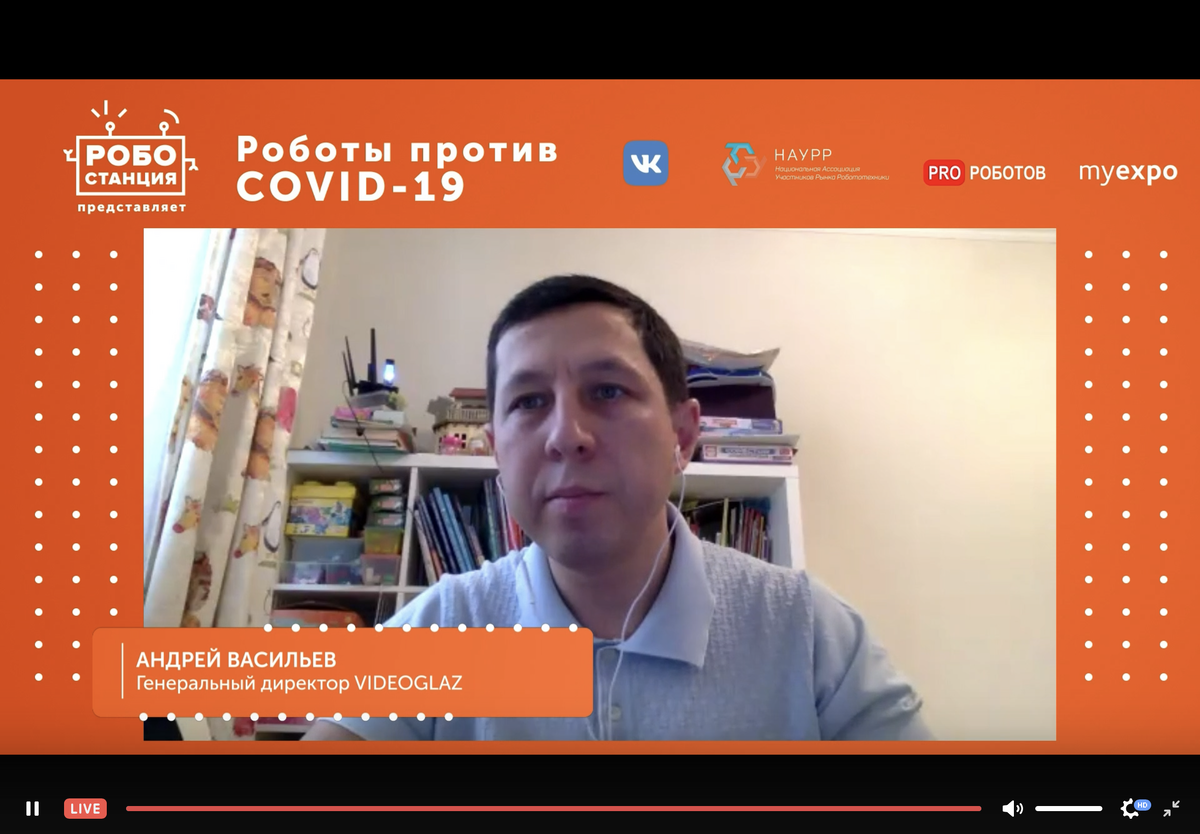 Международный онлайн-форум «Роботы против COVID-19» прошёл с 18 по 19 декабря на Робостанции ВДНХ. Официальная трансляция форума была на сайте ВКонтакте. За два дня эксперты со всего мира обсудили, какие технологии необходимы для борьбы с коронавирусом, как роботы и искусственный интеллект помогают в борьбе с COVID-19 в России и за границей.